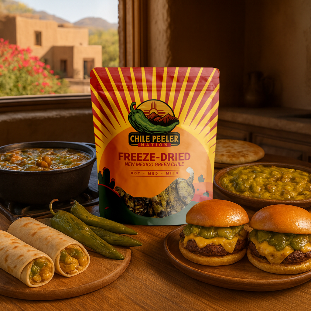 After serving over a decade in the U.S. Air Force, including multiple deployments overseas, our founder returned home to celebrate the bold flavors, rich heritage, and deep-rooted traditions of the community that shaped her. Inspired by the ritual of peeling chile, a badge of honor in New Mexico kitchens, Chile Peeler Nation was born. From garden to table, we bring you authentic Freeze-Dried New Mexico Green Chile, crafted with pride, passion, and a love for tradition.